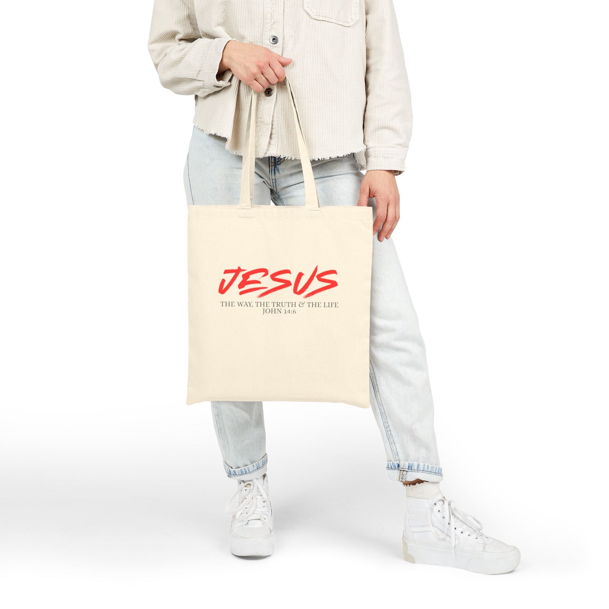 Featuring the powerful words of Jesus from John 14:6, this durable, heavy-duty cotton canvas tote is a stylish reminder that He is the Way, the Truth, and the Life. Perfect for Bible study, errands, or a daily declaration of faith.